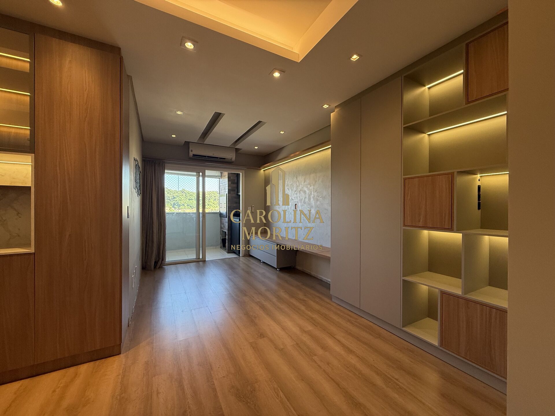 Semi-mobiliado, permanece no imóvel todos os móveis planejados, aquecedor a gás, máquina de ar condicionado na sala e suíte.